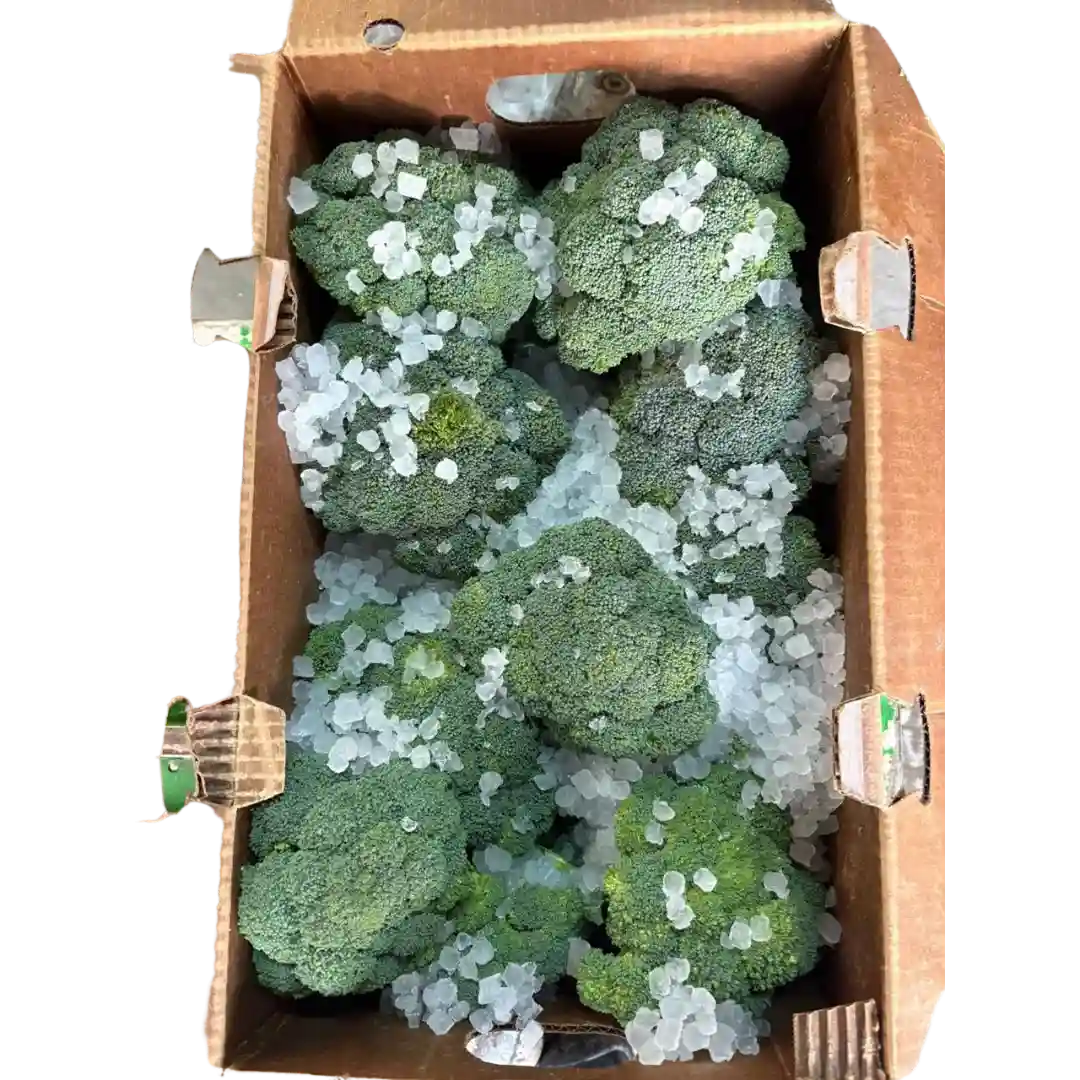 Brócoli empacado con hielo para máxima frescura y color.